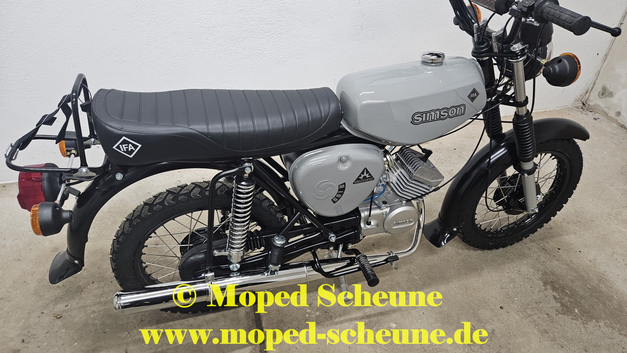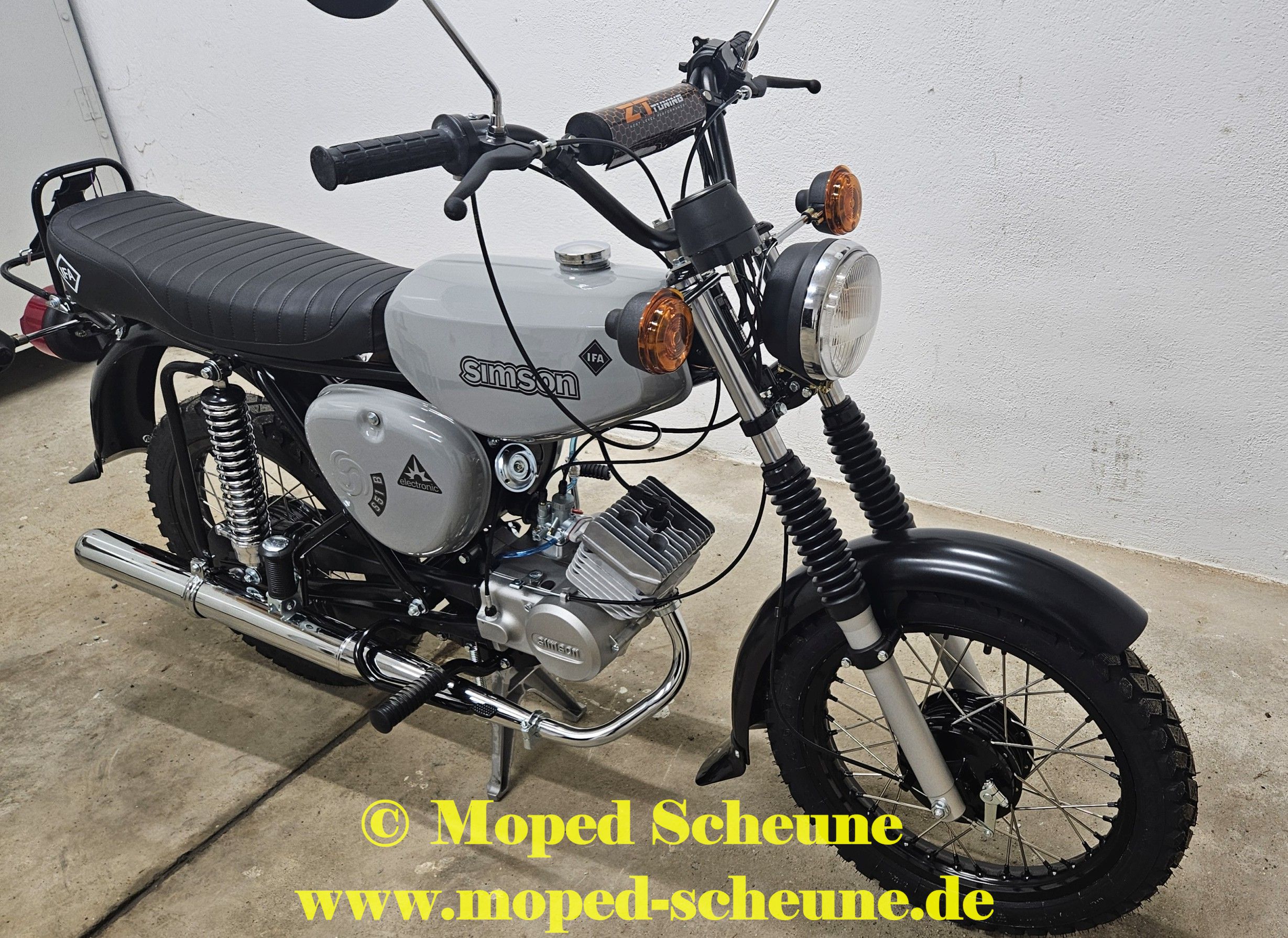 Simson S51 - Grau - ZT Tuning Lenker - Werksneuer 4 Gang Motor - 12 Volt Vape