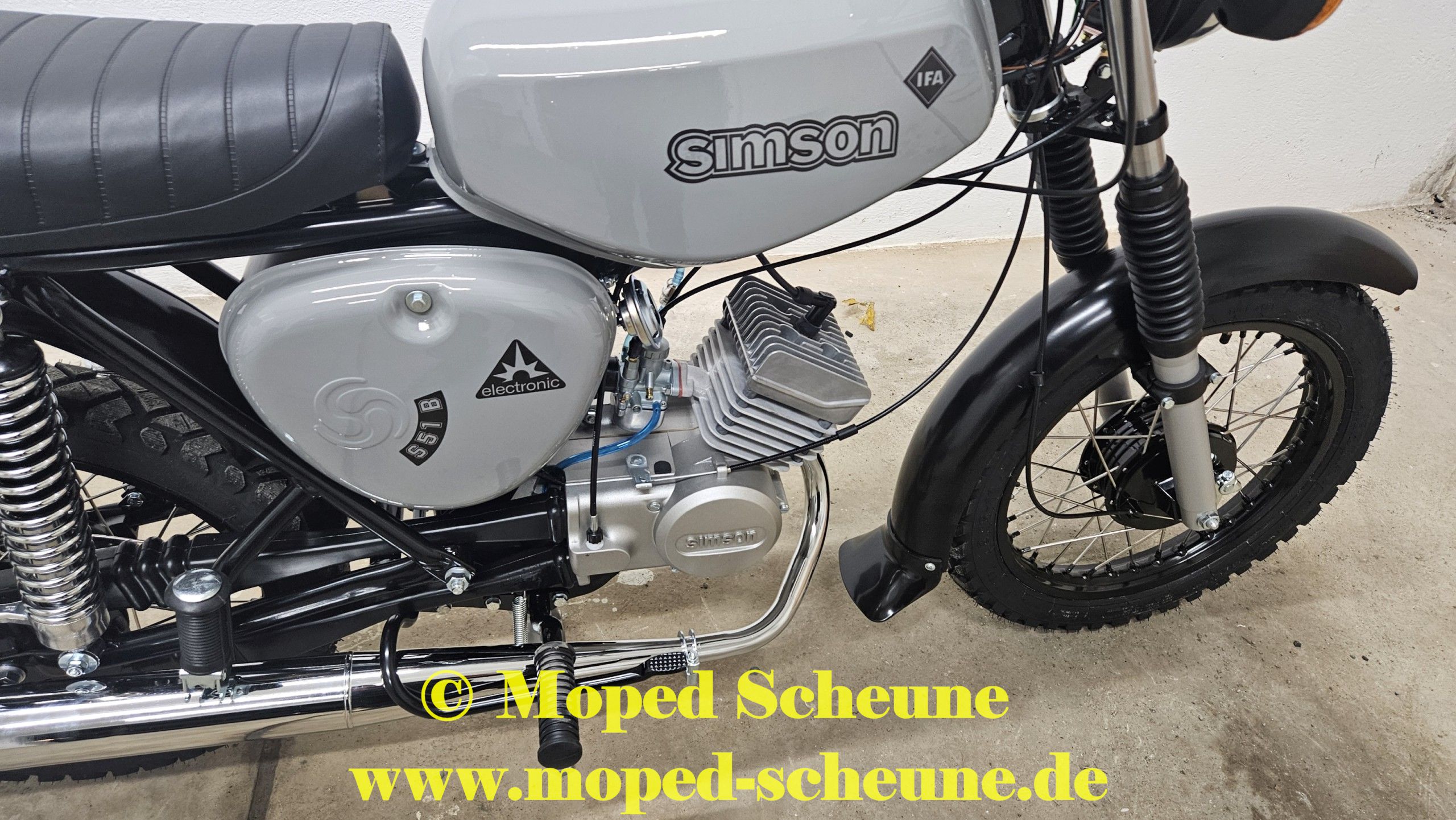 Simson S51 - Grau - ZT Tuning Lenker - Werksneuer 4 Gang Motor - 12 Volt Vape